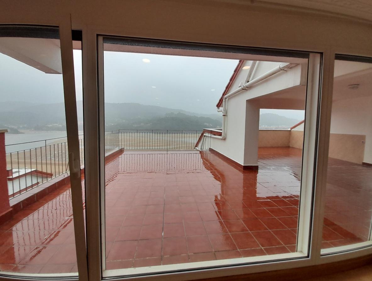 Salón amplio, con salida de ventanales corridos, a una maravillosa terraza de unos 70 m2, parte cubierta y parte no. Orientada al Oeste. Y observando el espectacular estuario y desembocadura de la ría de Gernika, en Urdaibai, Reserva de la Biosfera declarada por la UNESCO en 1984.